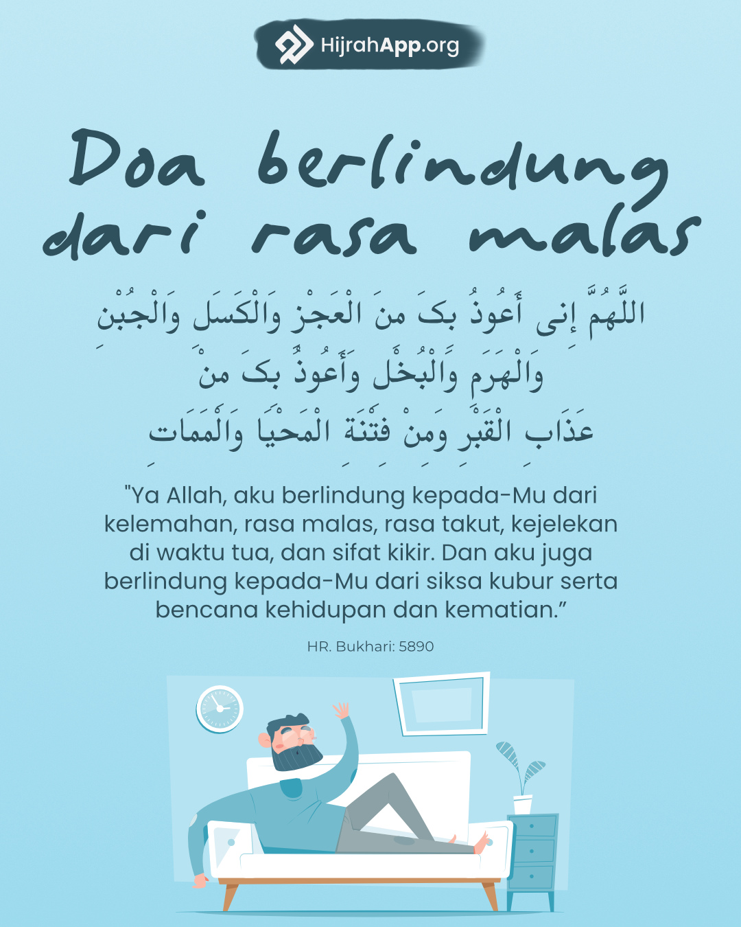 [1] Beliau adalah Abu ‘Abdirrahman Mu’âdz bin Jabal al-Anshâri al-Khazraji Radhiyallahu anhu, seorang Shahabat yang terkenal, salah seorang Ulama dari kalangan Shahabat. Wafat di Syam karena wabah Tha’un Amwas pada tahun 18 H