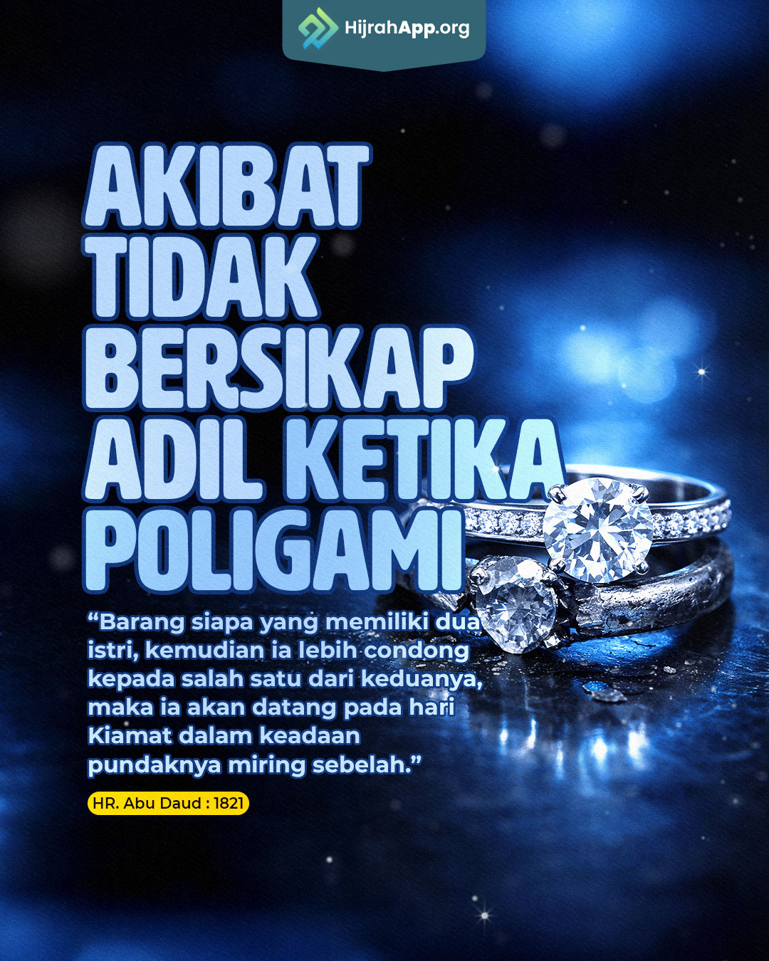 “Barangsiapa memiliki dua isteri, kemudian ia lebih condong kepada salah satu dari keduanya, maka ia akan datang pada hari Kiamat dalam keadaan pundaknya miring sebelah.”[1]
