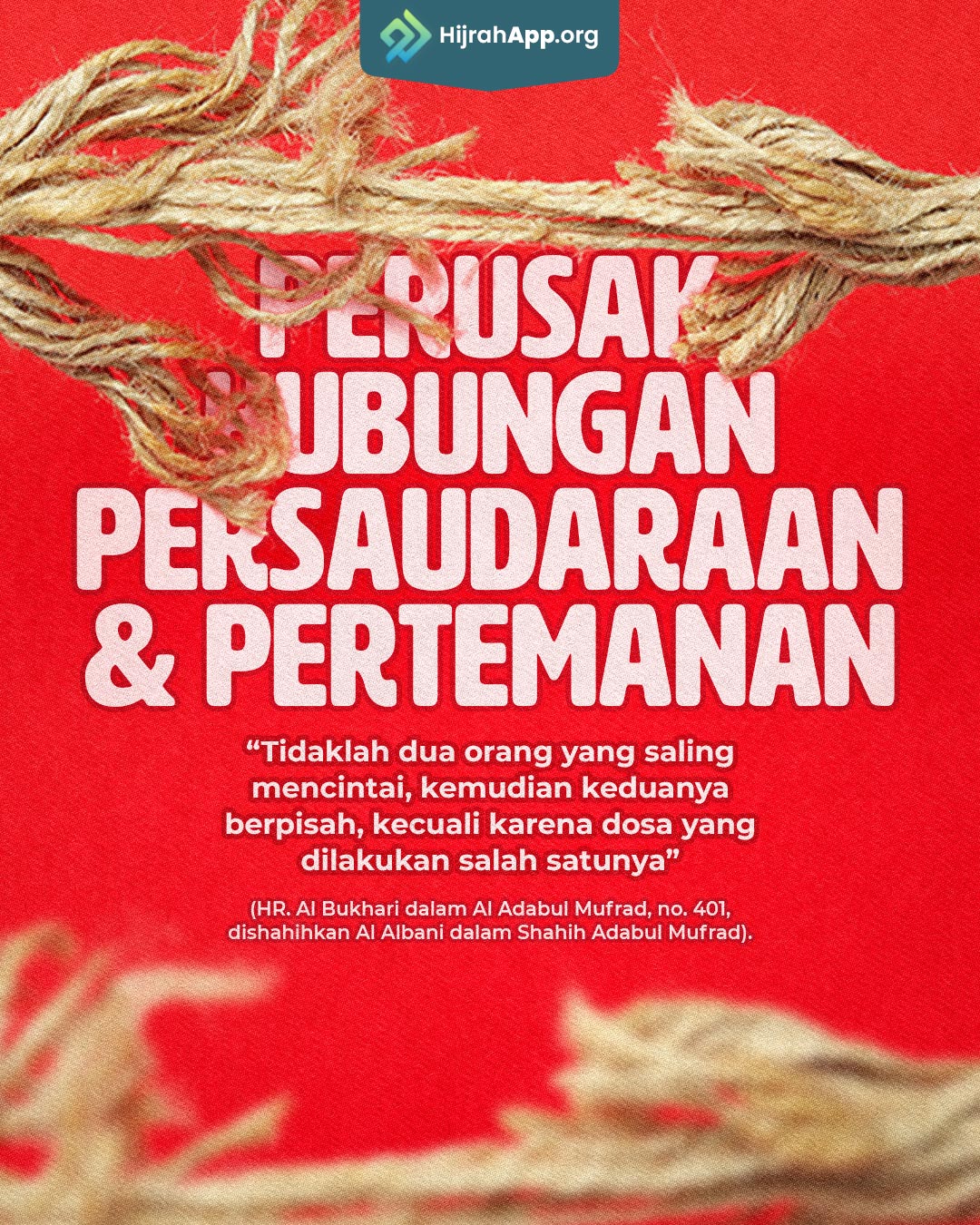 “Tidaklah (sempurna) iman salah seorang di antara kalian, hingga ia mencintai untuk saudaranya apa yang ia cintai untuk dirinya.” (HR. Bukhari dan Muslim)