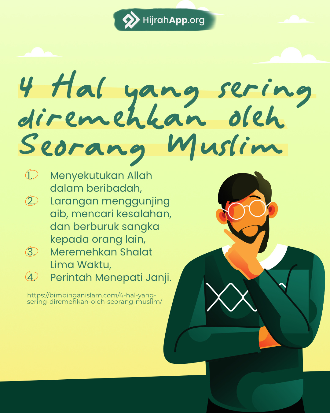 sumber : https://bimbinganislam.com/4-hal-yang-sering-diremehkan-oleh-seorang-muslim/