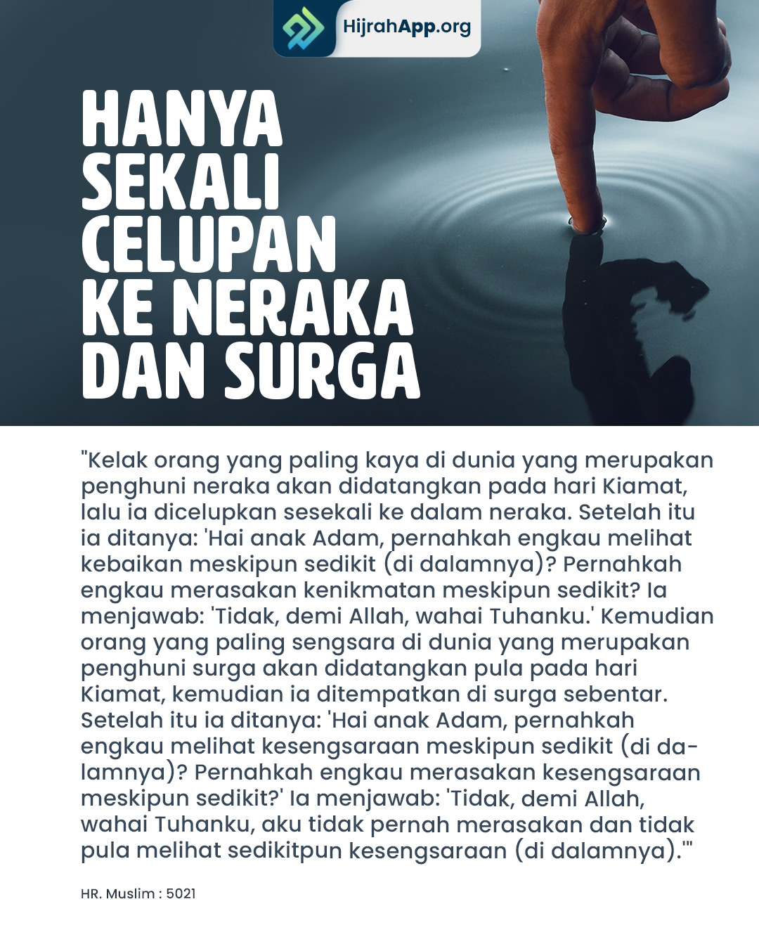 “Sesungguhnya dunia ini begitu manis nan hijau. Dan Allah mempercayakan kalian untuk mengurusinya, Allah ingin melihat bagaimana perbuatan kalian. Karenanya jauhilah fitnah dunia dan jauhilah fitnah wanita, sebab sesungguhnya fitnah pertama kali di kalangan Bani Israil adalah masalah wanita” (H.R. Muslim: 2742)