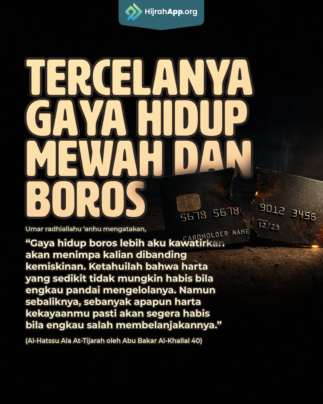“Gaya hidup boros lebih aku kawatirkan akan menimpa kalian dibanding kemiskinan. Ketahuilah bahwa harta yang sedikit tidak mungkin habis bila engkau pandai mengelolanya. Namun sebaliknya, sebanyak apapun harta kekayaanmu pasti akan segera habis bila engkau salah membelanjakannya.”