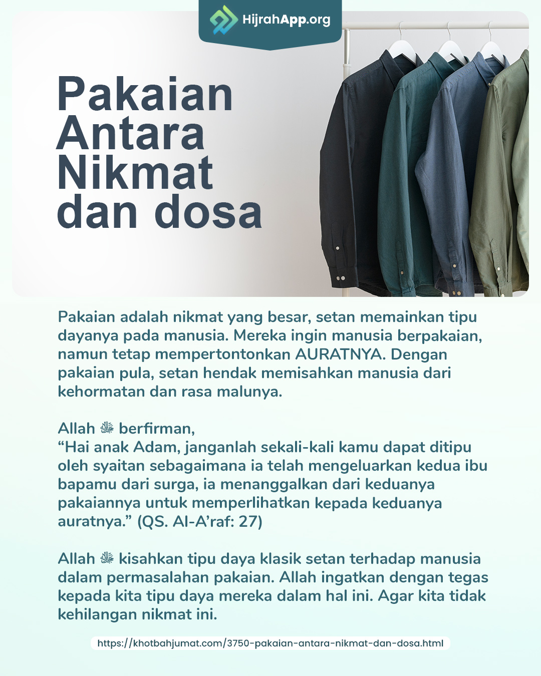 sumber : https://khotbahjumat.com/3750-pakaian-antara-nikmat-dan-dosa.html