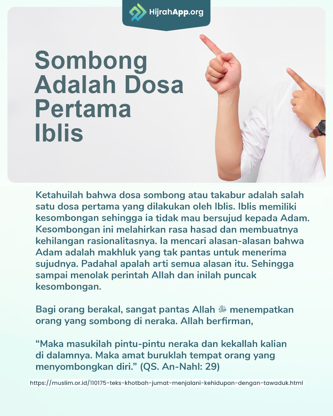 “Maka masukilah pintu-pintu neraka dan kekallah kalian di dalamnya. Maka amat buruklah tempat orang yang menyombongkan diri.” (QS. An-Nahl: 29)