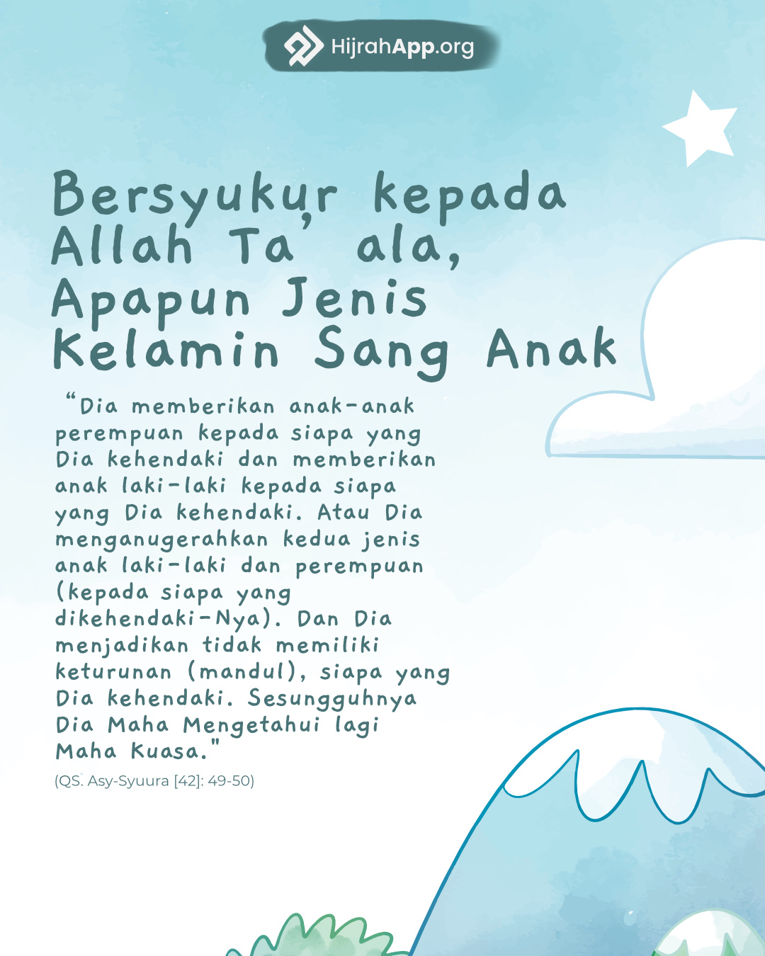 6 Dinyatakan oleh Aisyah x bahwa Rasulullah n mengambil bai’at dari wanita. Apabila si wanita memberikan bai’atnya (menyanggupi apa yang disebutkan dalam pembai’atan) beliau berkata, “Pergilah engkau karena sungguh aku telah membai’atmu.” (HR. Muslim)