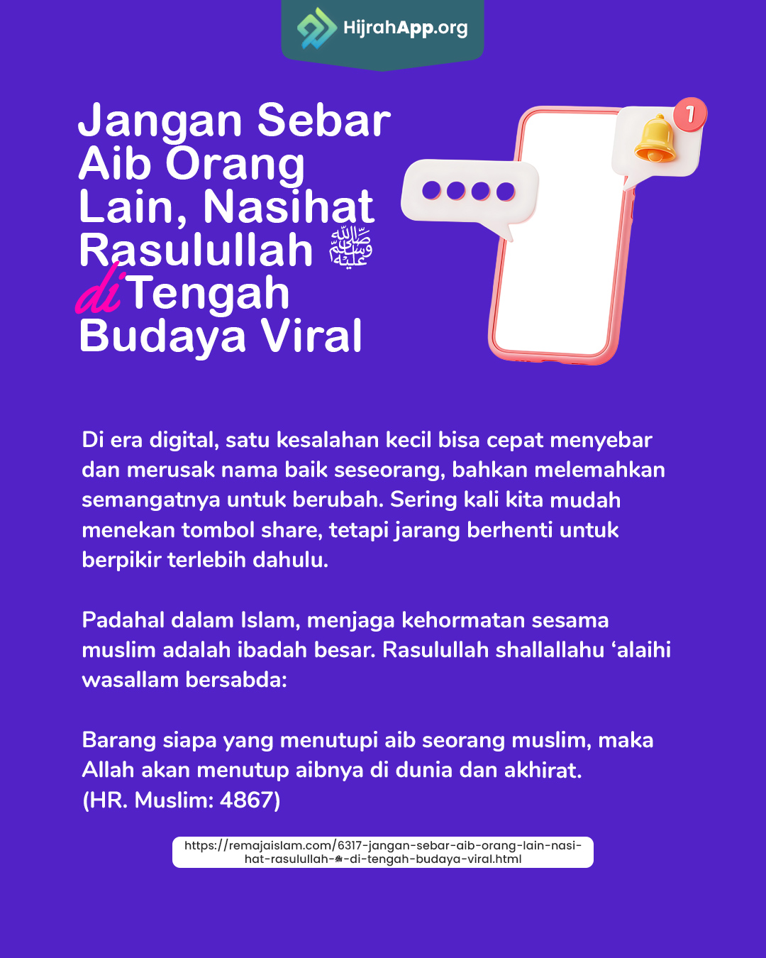 sumber: https://remajaislam.com/6317-jangan-sebar-aib-orang-lain-nasihat-rasulullah-%EF%B7%BA-di-tengah-budaya-viral.html