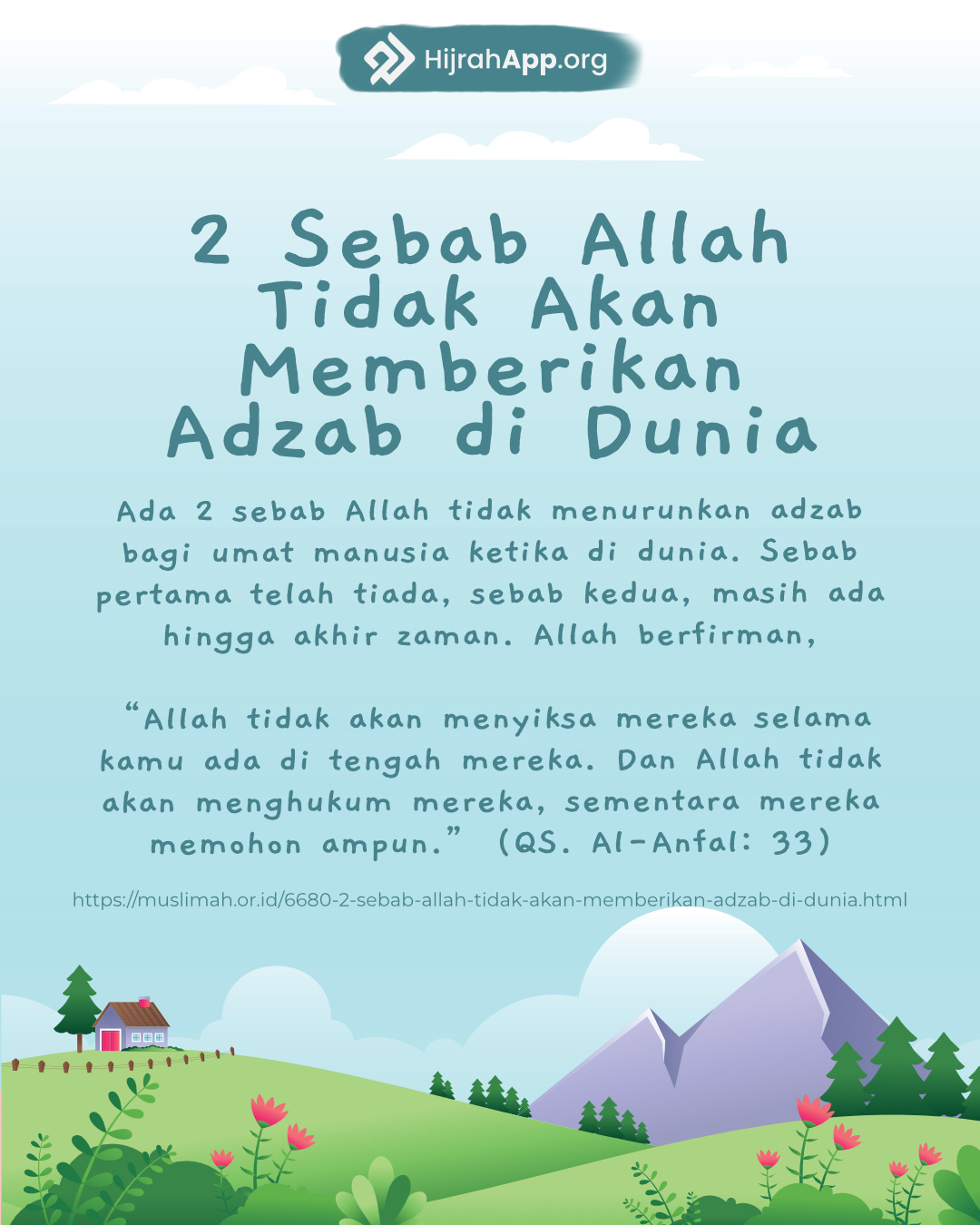 Sumber: https://muslimah.or.id/6680-2-sebab-allah-tidak-akan-memberikan-adzab-di-dunia.html