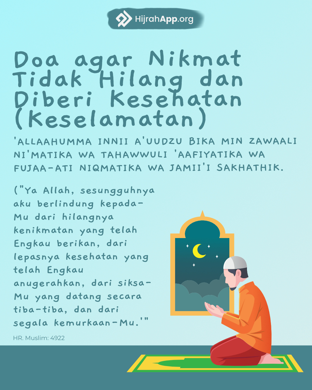 “Nikmat apapun yang kamu terima, maka itu dari Allah, dan bencana apa saja yang menimpamu, maka itu karena (kesalahan) dirimu sendiri.” (QS. An-Nisaa: 79)