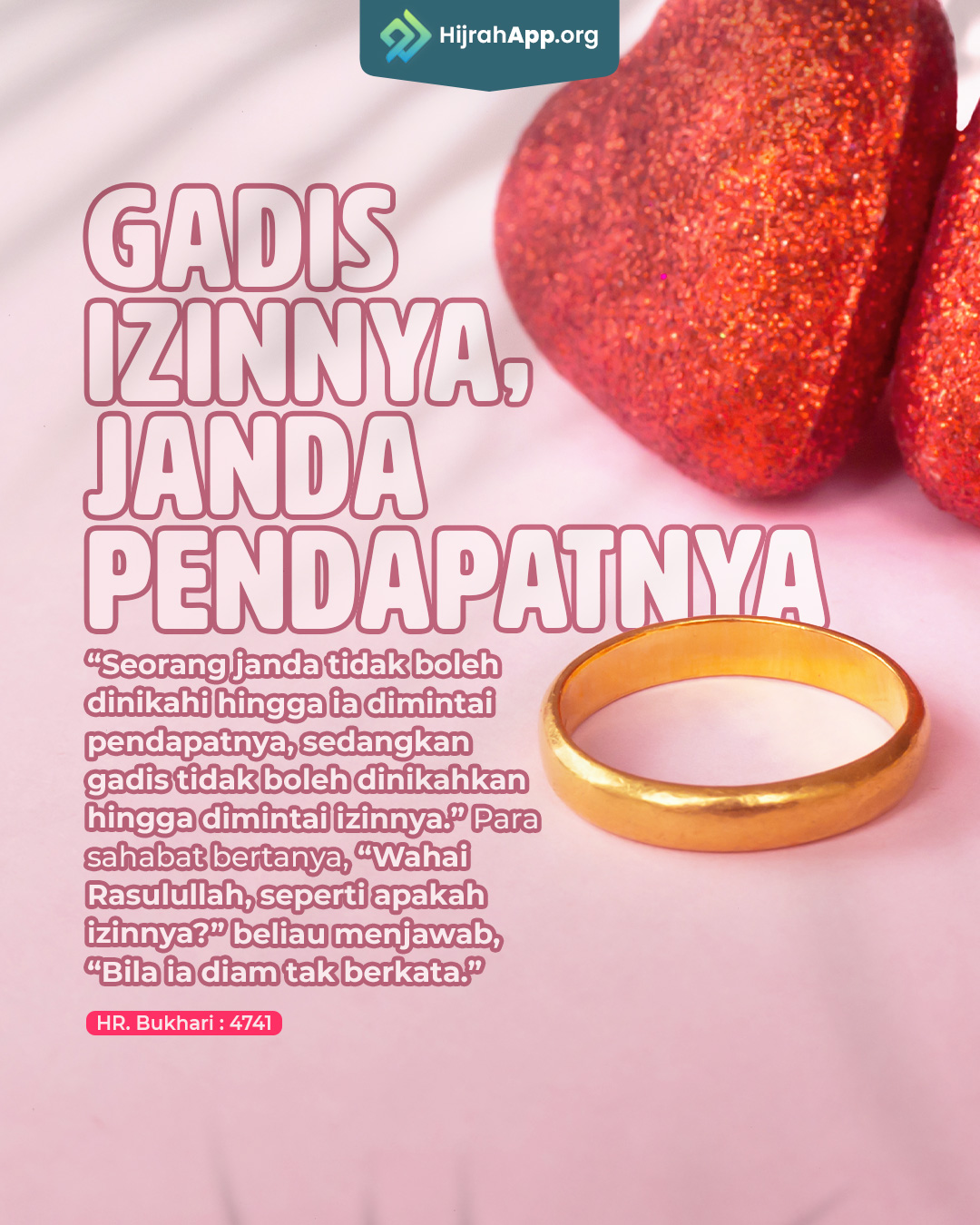 “Siapa yang menikah karena menginginkan kehormatan, maka (suatu saat) ia akan hina. Siapa yang menikah karena mencari harta, maka (suatu saat) ia akan miskin. Namun, siapa yang menikah karena faktor agamanya, maka Allah akan kumpulkan untuknya harta dan kehormatan di samping agamanya.”