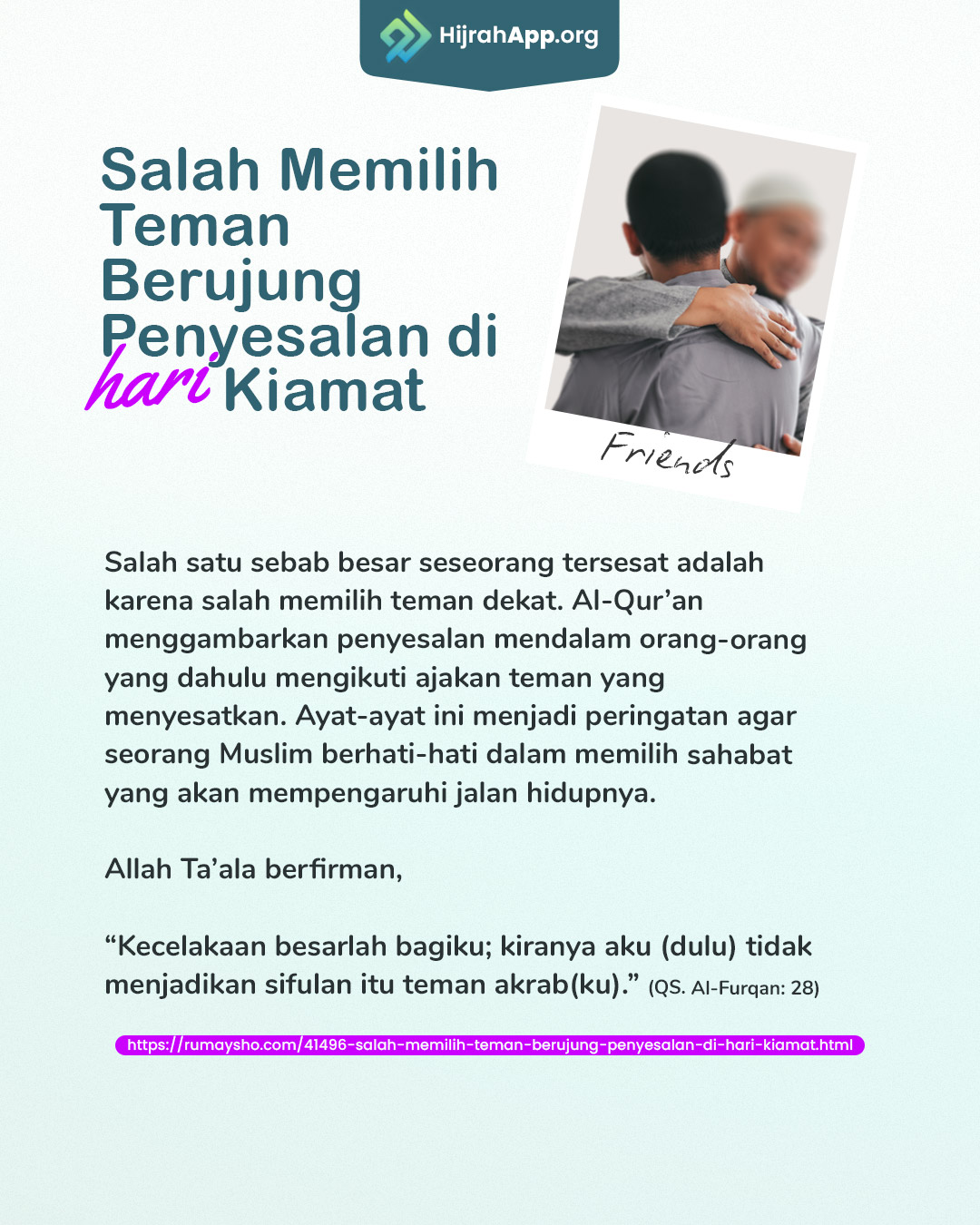 sumber: https://rumaysho.com/41496-salah-memilih-teman-berujung-penyesalan-di-hari-kiamat.html