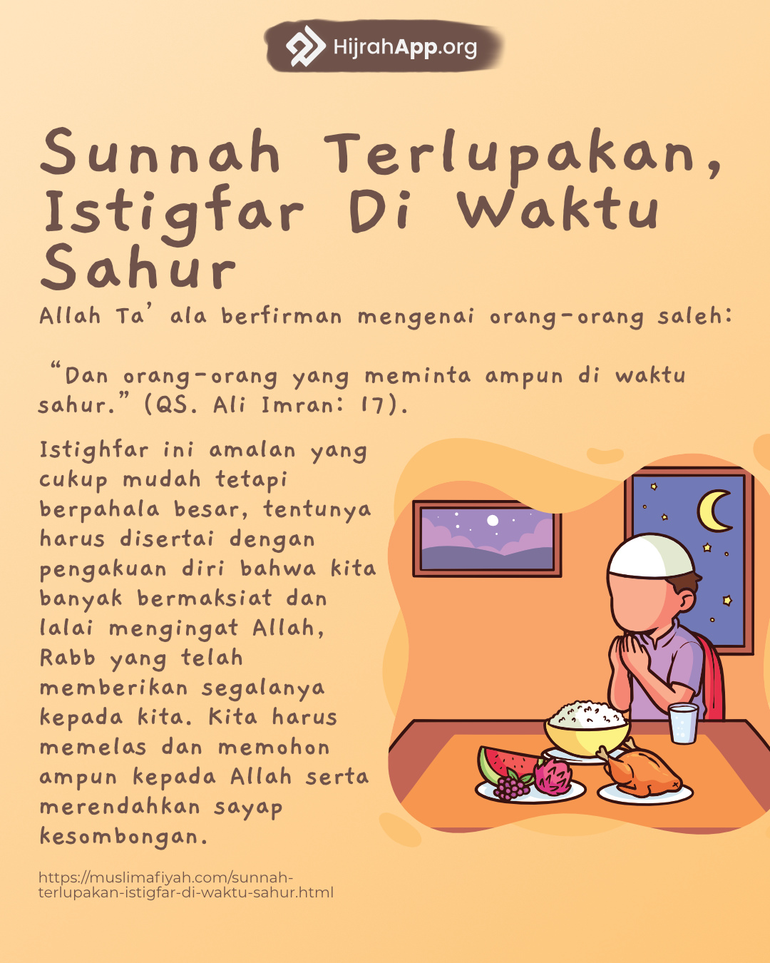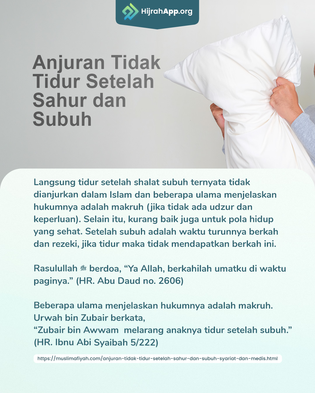sumber: https://muslimafiyah.com/anjuran-tidak-tidur-setelah-sahur-dan-subuh-syariat-dan-medis.html