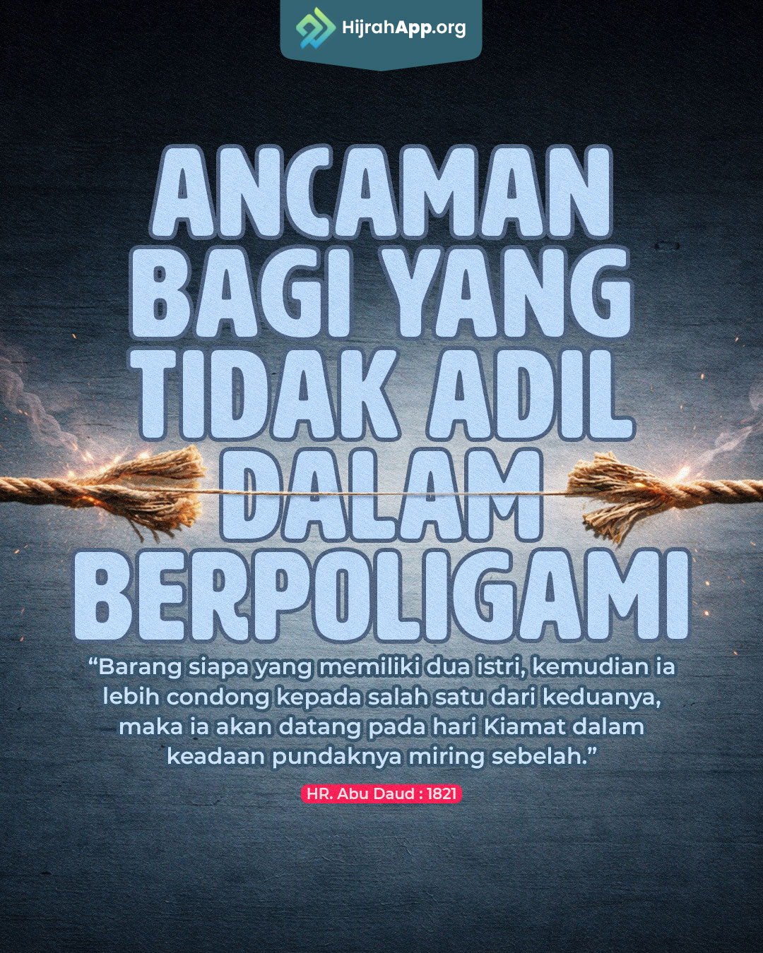 “Barangsiapa memiliki dua isteri, kemudian ia lebih condong kepada salah satu dari keduanya, maka ia akan datang pada hari Kiamat dalam keadaan pundaknya miring sebelah.”[1]