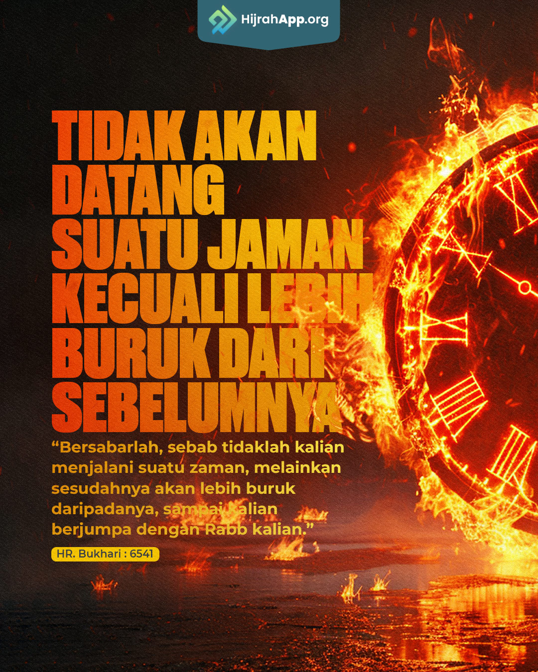 “Jika engkau berada di sore hari, maka janganlah menunggu waktu pagi. Jika engkau berada di waktu pagi, janganlah menunggu sore. Isilah waktu sehatmu sebelum datang sakitmu, dan isilah masa hidupmu sebelum datang matimu.” (HR. Bukhari no. 6416). Hadits ini mengajarkan untuk tidak panjang angan-angan, bahwa hidup kita tidak lama.