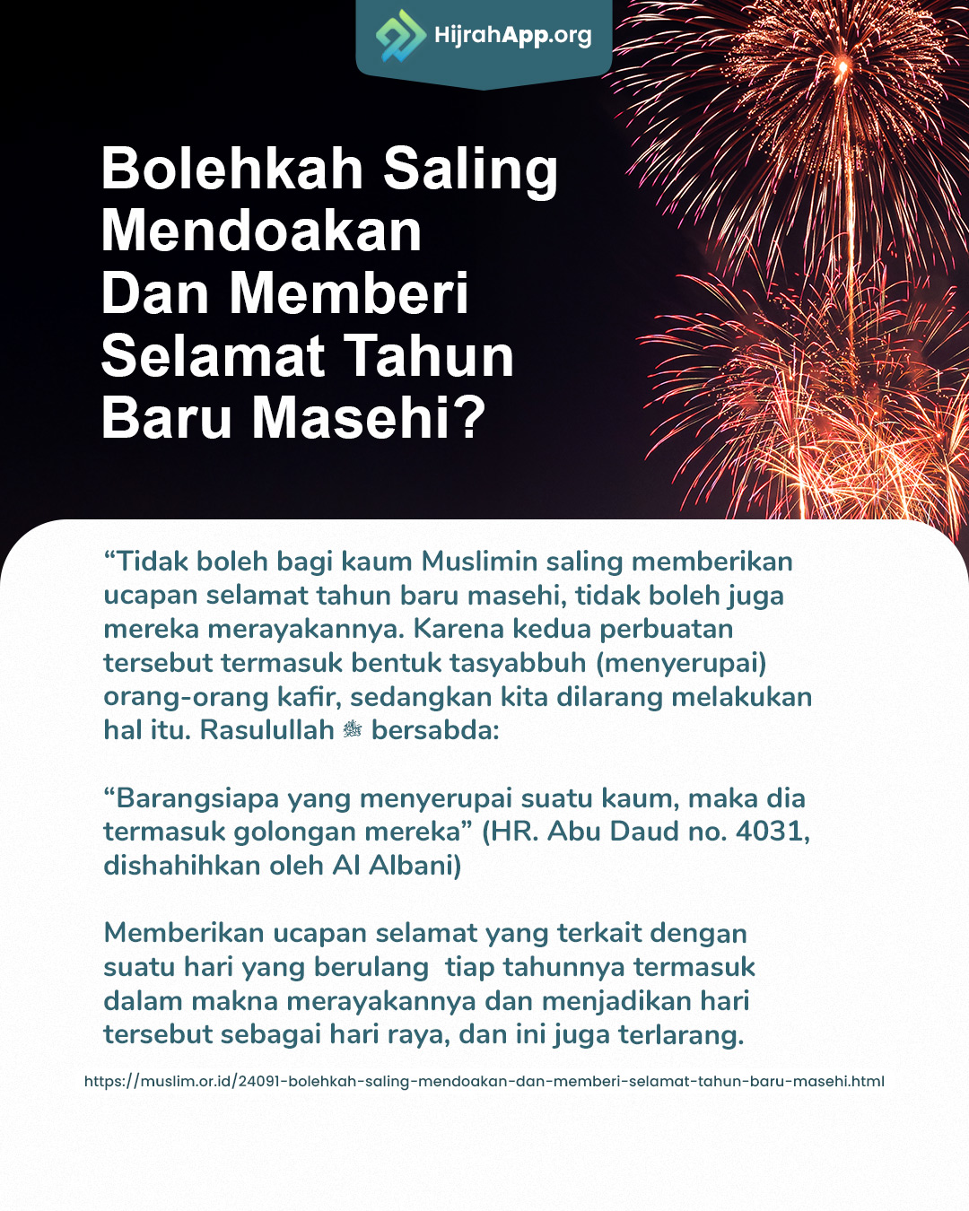 Tidak ada awal dan akhir tahun, yang ada hanyalah umur yang semakin berkurang. Mengapa kita selalu berpikir bahwa umur kita bertambah, namun tidak memikirkan ajar semakin dekat? Benar kata Al Hasan Al Bashri, seorang tabi’in terkemuka yang menasehati kita agar bisa merenungkan bahwa semakin bertambah tahun, semakin bertambah hari, itu berarti berkurangnya umur kita setiap saat.