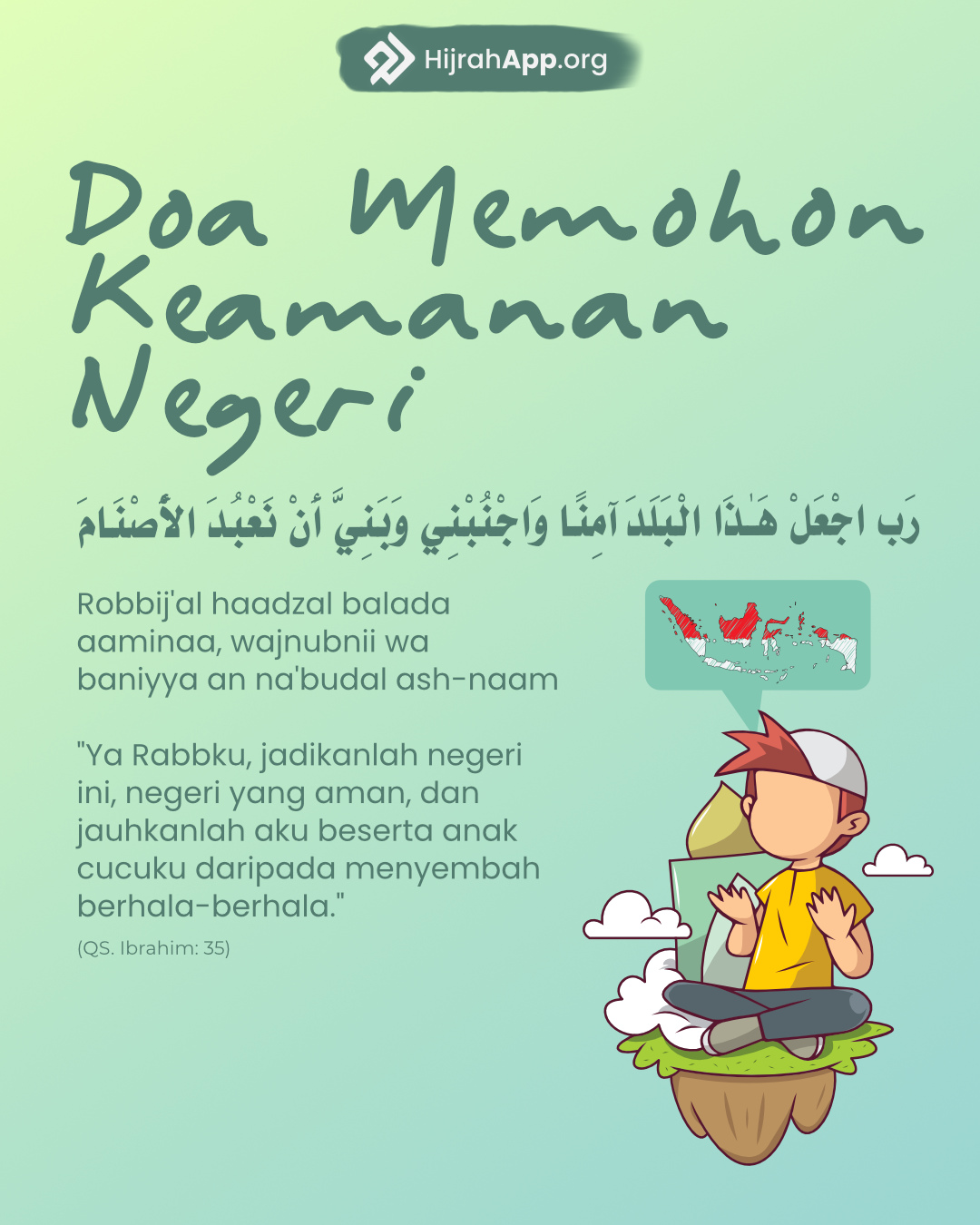 Ya Allâh! Tutupilah aib celaku dan berilah rasa aman kepadaku dari rasa takutku
