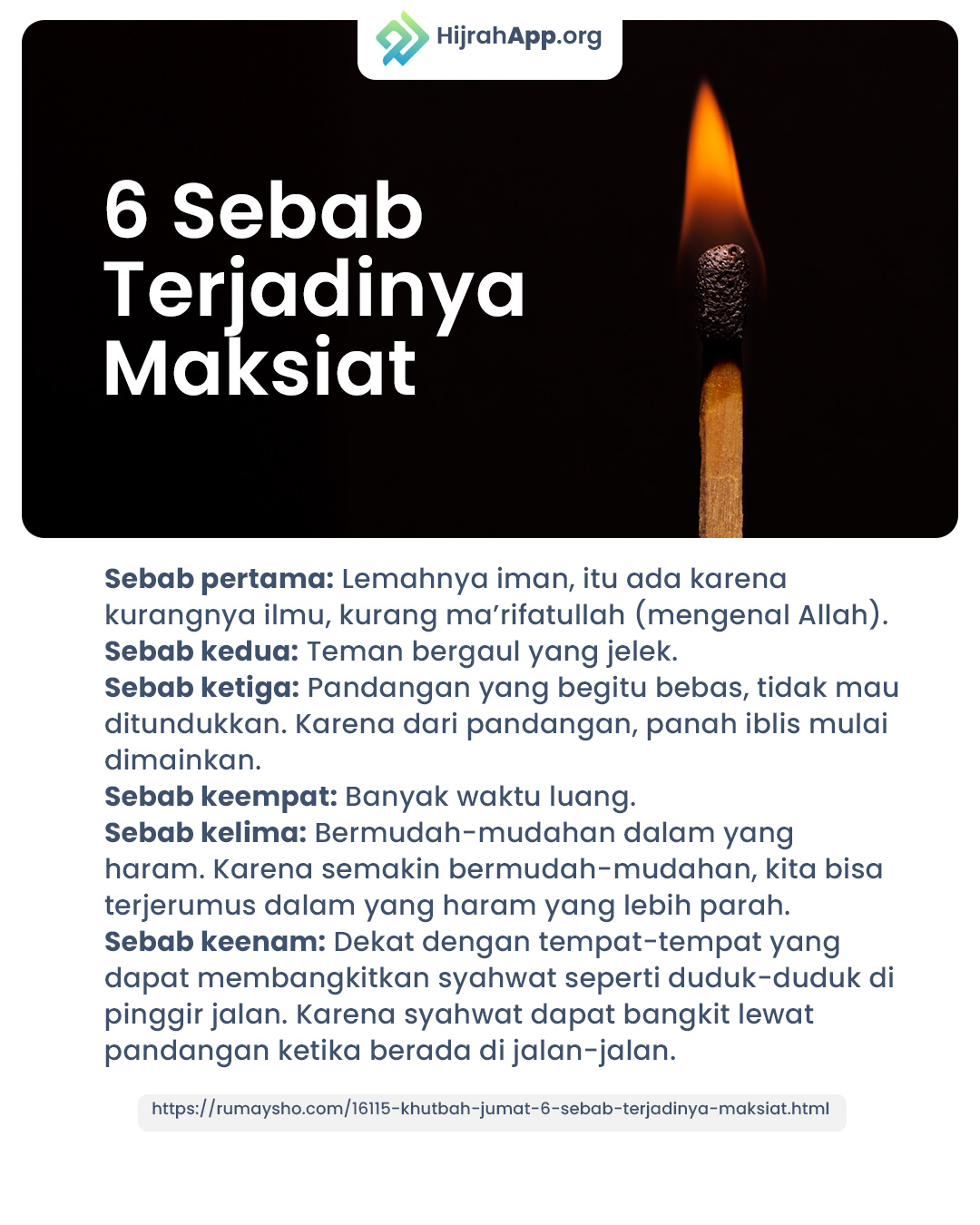 sumber : https://rumaysho.com/16115-khutbah-jumat-6-sebab-terjadinya-maksiat.html