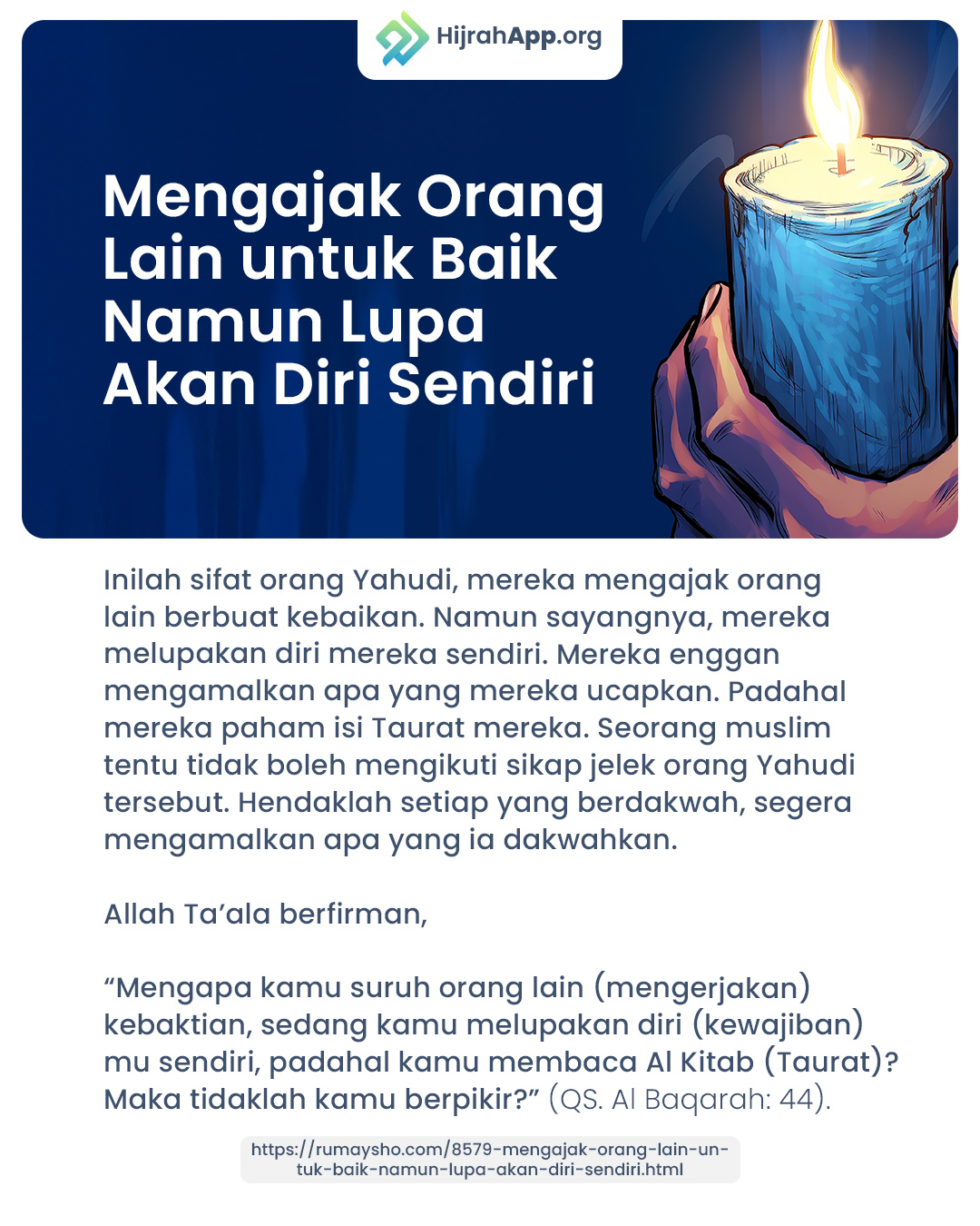 Dari Tsauban radhiyallahu ‘anhu, dari Nabi shallallahu ‘alaihi wa sallam, ia berkata, “Sungguh aku mengetahui suatu kaum dari umatku datang pada hari kiamat dengan banyak kebaikan semisal Gunung Tihamah. Namun Allah menjadikan kebaikan tersebut menjadi debu yang bertebaran.” Tsauban berkata, “Wahai Rasulullah, coba sebutkan sifat-sifat mereka pada kami supaya kami tidak menjadi seperti mereka sedangkan kami tidak mengetahuinya.”