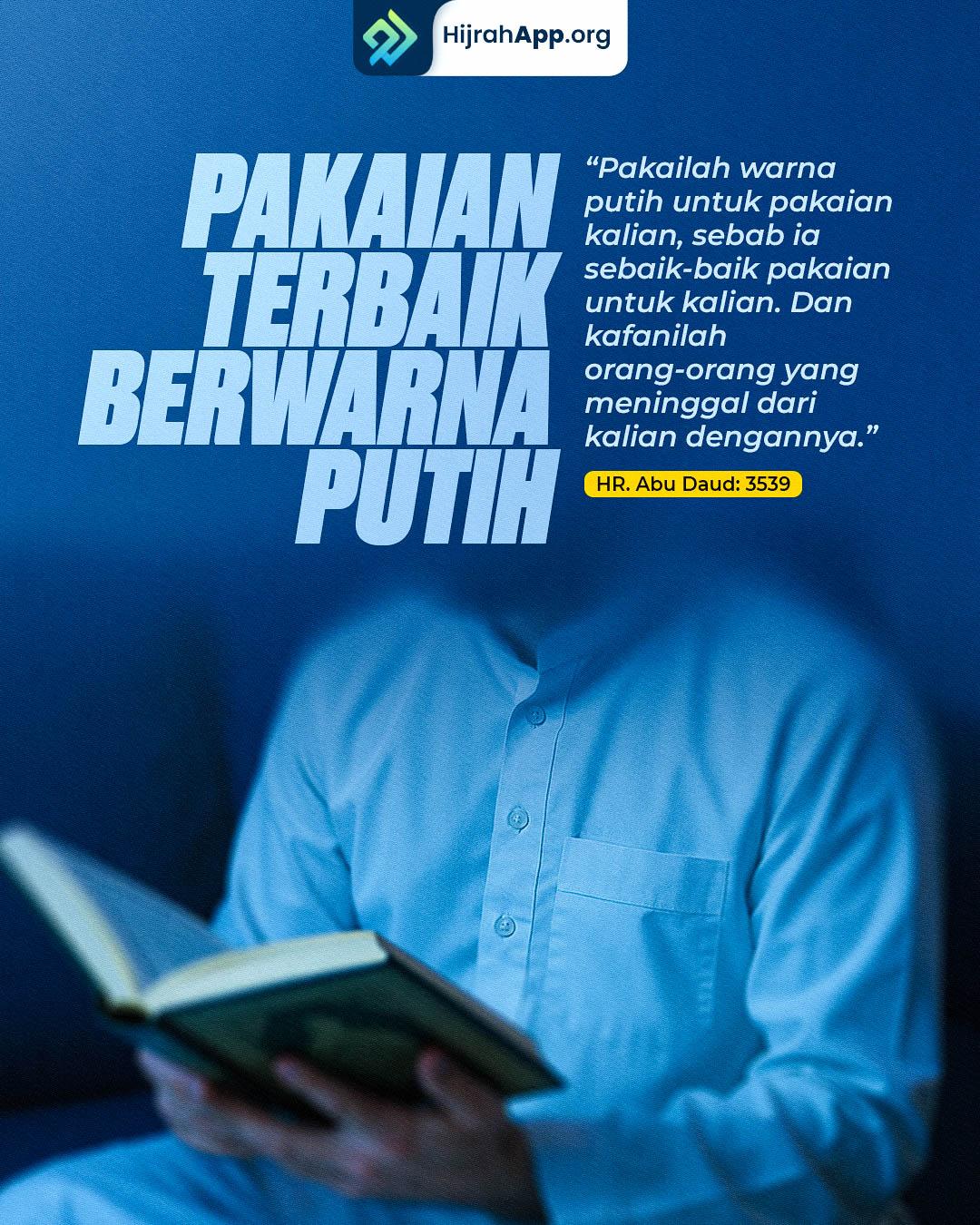 “Pakailah pakaian putih karena pakaian seperti itu adalah sebaik-baik pakaian kalian dan kafanilah mayit dengan kain putih pula” (HR. Abu Daud no. 4061, Ibnu Majah no. 3566 dan An Nasai no. 5325. Al Hafizh Abu Thohir mengatakan bahwa hadits ini hasan).