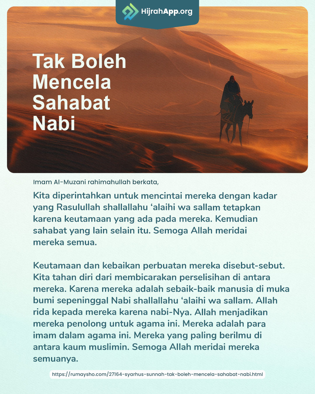Ya Allah, berilah kami petunjuk untuk mengikuti jejak mulia para sahabat dan moga kami menjadi orang-orang yang mencintai mereka.