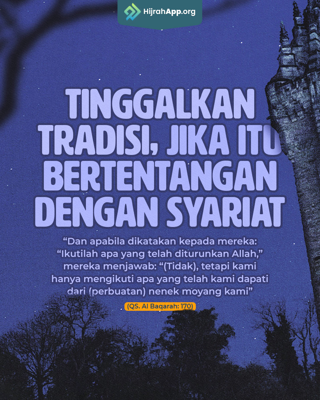 “Dan apabila dikatakan kepada mereka: “Ikutilah apa yang telah diturunkan Allah,” mereka menjawab: “(Tidak), tetapi kami hanya mengikuti apa yang telah kami dapati dari (perbuatan) nenek moyang kami” (QS. Al Baqarah: 170).