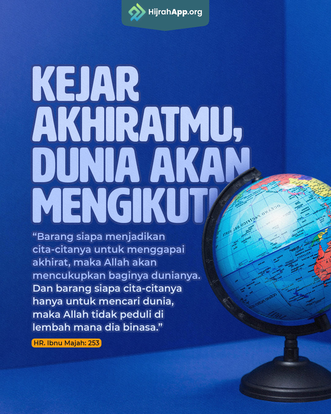 Barangsiapa menghendaki keuntungan di akhirat akan Kami tambahkan keuntungan itu baginya, dan barangsiapa menghendaki keuntungan di dunia Kami berikan kepadanya sebagian darinya (keuntungan dunia), tetapi dia tidak akan mendapat bagian di akhirat. [Asy-Syûrâ/42:20]