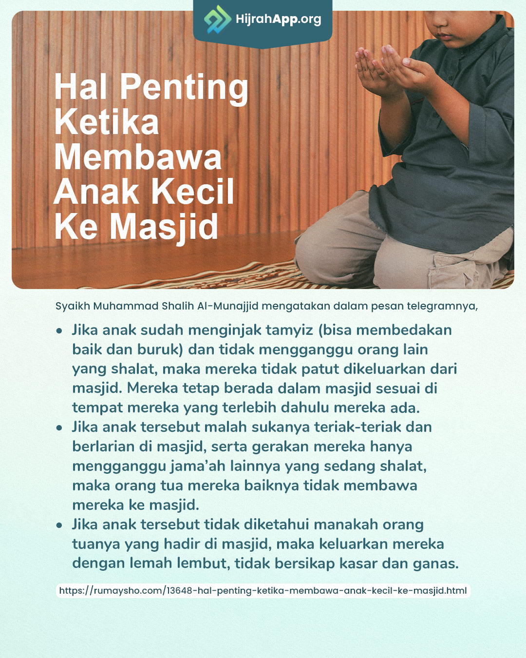 sumber: https://rumaysho.com/13648-hal-penting-ketika-membawa-anak-kecil-ke-masjid.html
