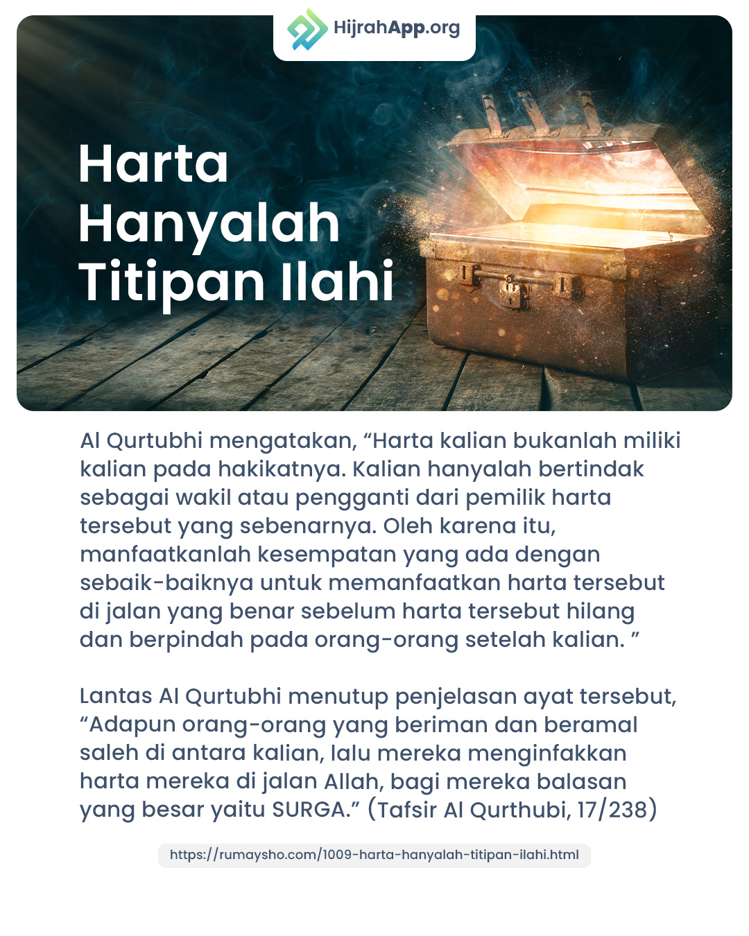 Yang harus engkau ingat dalam benakmu … Hartamu hanyalah titipan ilahi.