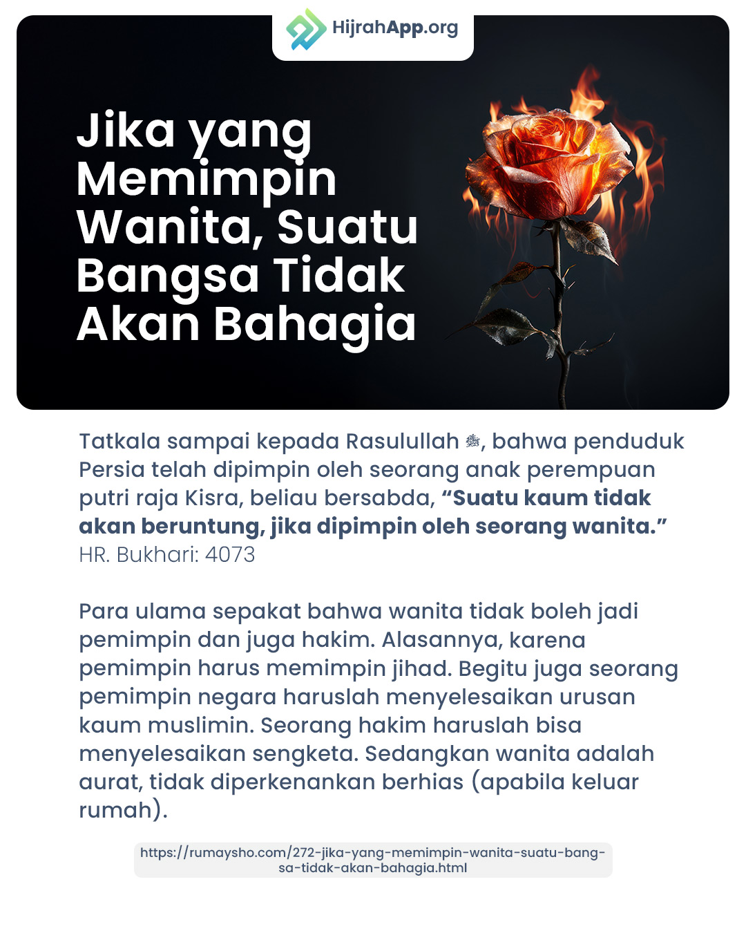 sumber : https://rumaysho.com/272-jika-yang-memimpin-wanita-suatu-bangsa-tidak-akan-bahagia.html