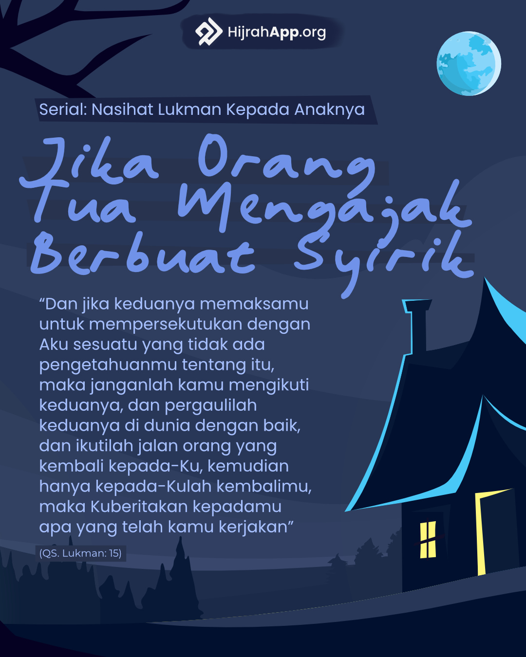 “Dan jika keduanya memaksamu untuk mempersekutukan dengan Aku sesuatu yang tidak ada pengetahuanmu tentang itu, maka janganlah kamu mengikuti keduanya, dan pergaulilah keduanya di dunia dengan baik, dan ikutilah jalan orang yang kembali kepada-Ku, kemudian hanya kepada-Kulah kembalimu, maka Kuberitakan kepadamu apa yang telah kamu kerjakan” (QS. Lukman: 15).