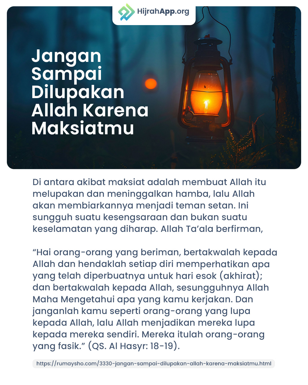 “Dan janganlah kamu mengikuti orang yang hatinya telah Kami lalaikan dari mengingati Kami, serta menuruti hawa nafsunya dan adalah keadaannya itu melewati batas” (QS. Al Kahfi: 28).
