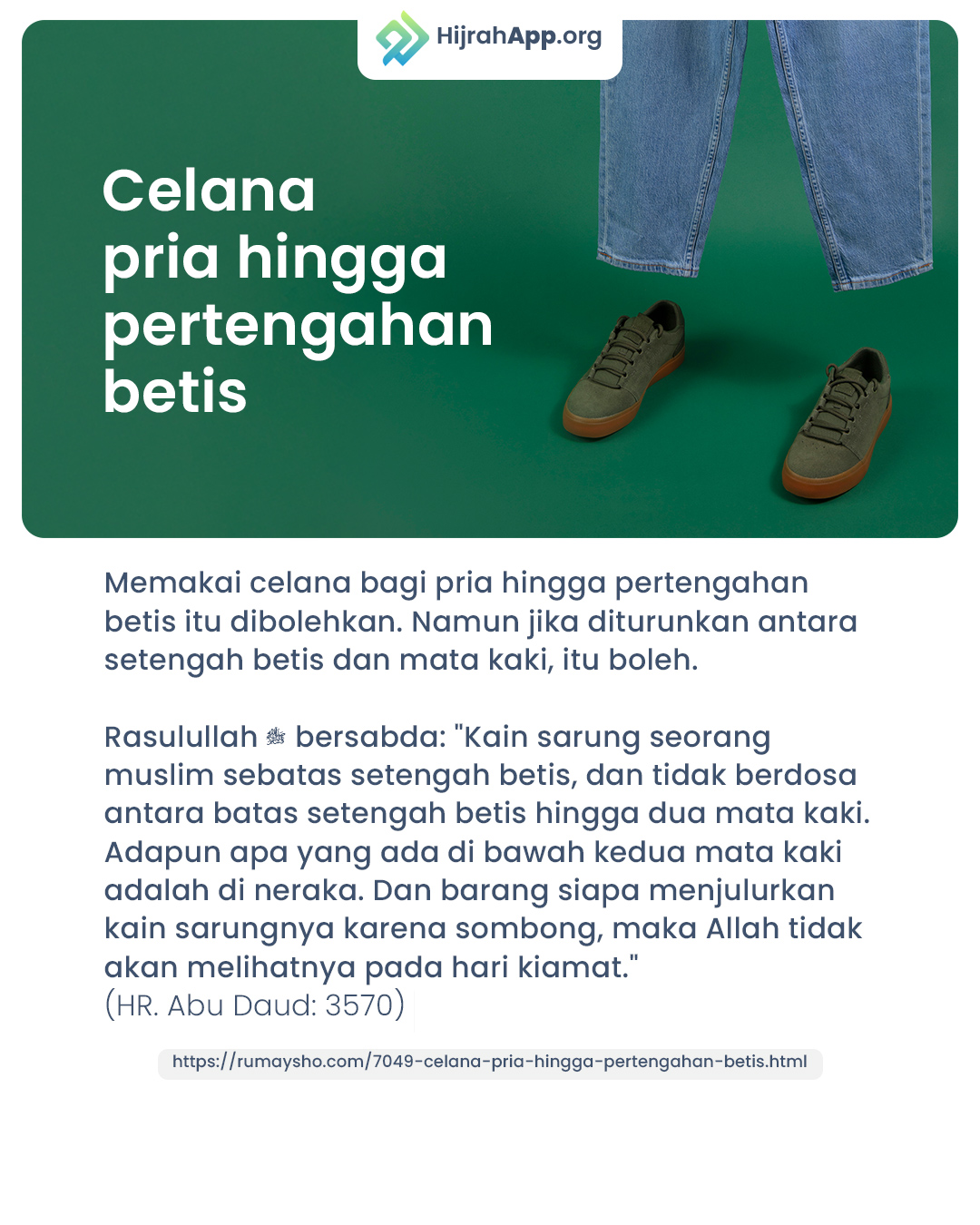 Sumber : https://rumaysho.com/7049-celana-pria-hingga-pertengahan-betis.html