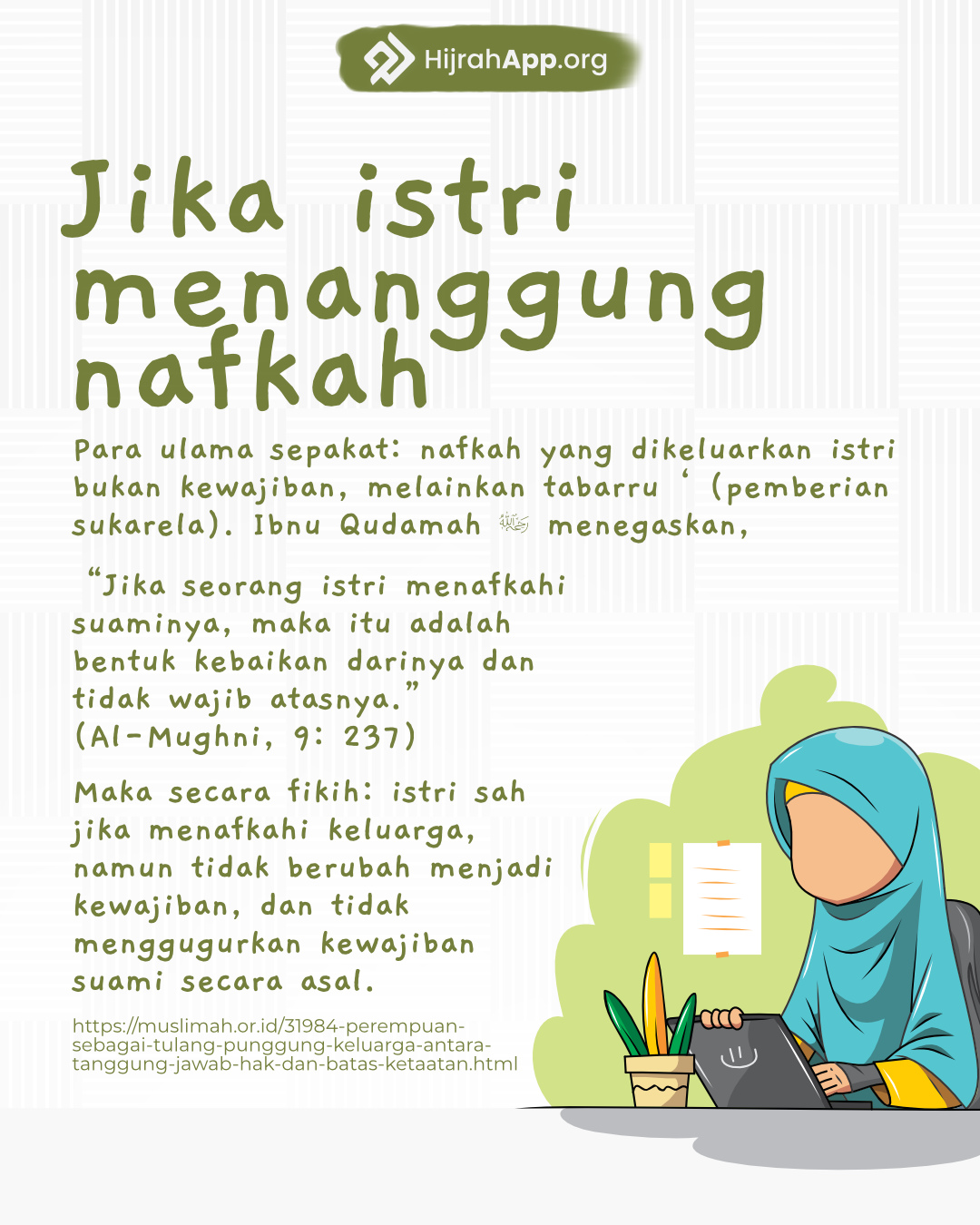 Seorang hamba berkata, ‘Hartaku! Hartaku! Sesungguhnya ia hanya memiliki tiga hal dari hartanya: apa yang telah ia makan lalu habis, atau apa yang ia kenakan lalu usang, atau apa yang ia berikan lalu ia simpan untuk akhiratnya. Adapun selain itu, maka ia akan pergi dan ditinggalkannya untuk orang lain.”[9]