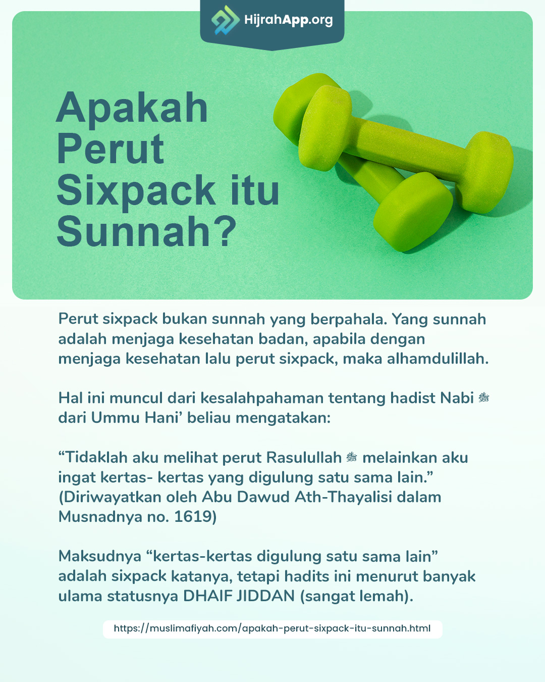 sumber : https://muslimafiyah.com/apakah-perut-sixpack-itu-sunnah.html