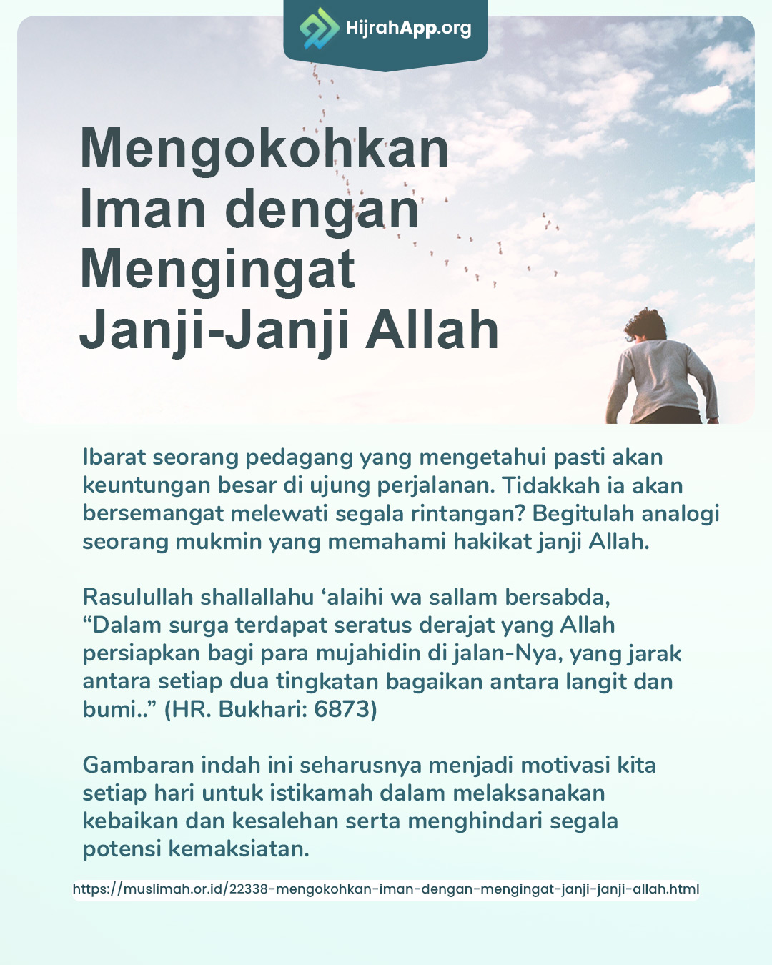 Ibarat seorang pedagang yang mengetahui pasti akan keuntungan besar di ujung perjalanan. Tidakkah ia akan bersemangat melewati segala rintangan? Begitulah analogi seorang mukmin yang memahami hakikat janji Allah.